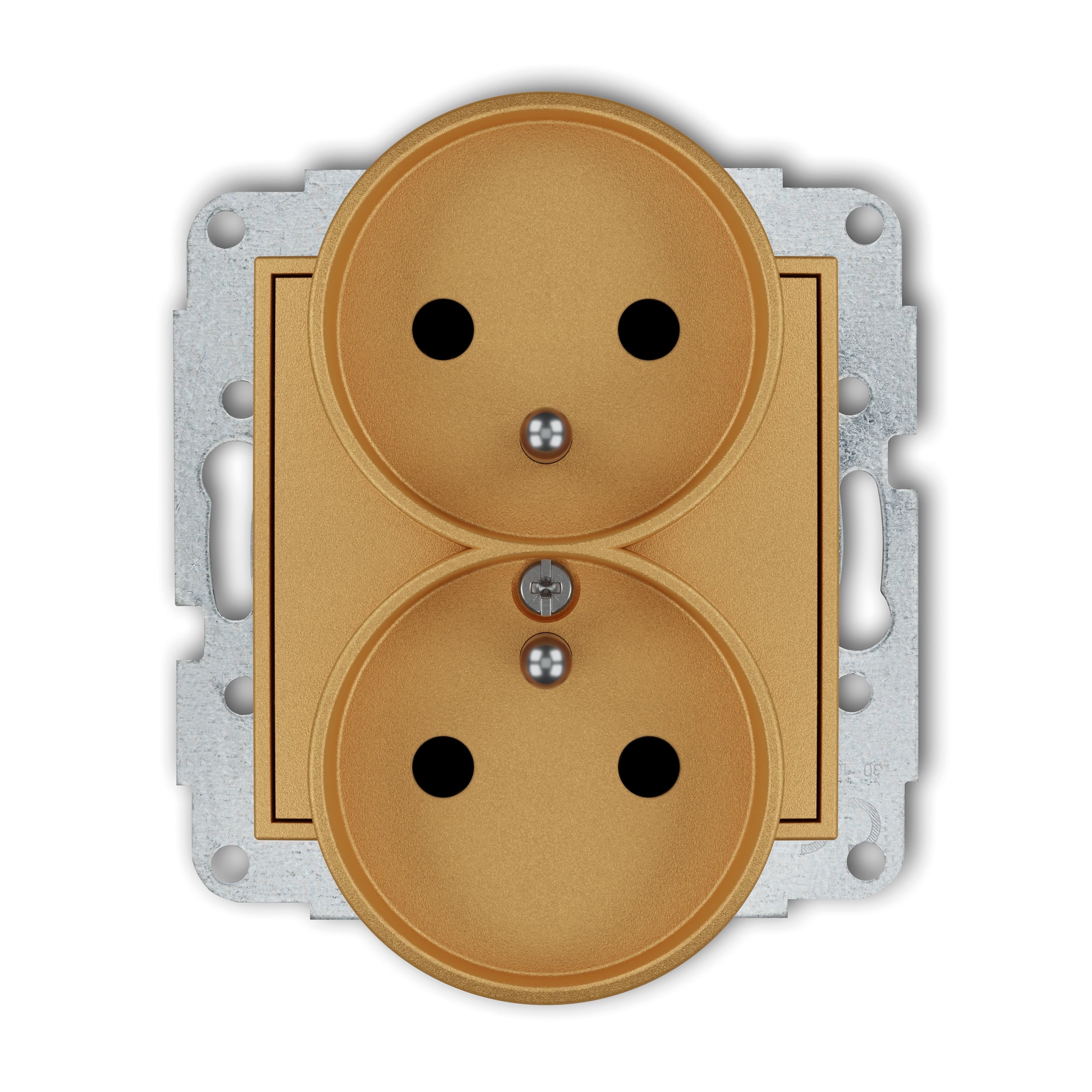 Double socket to a frame with the 2x(2P+Z) earth mechanism (with increased contact protection/shutter)