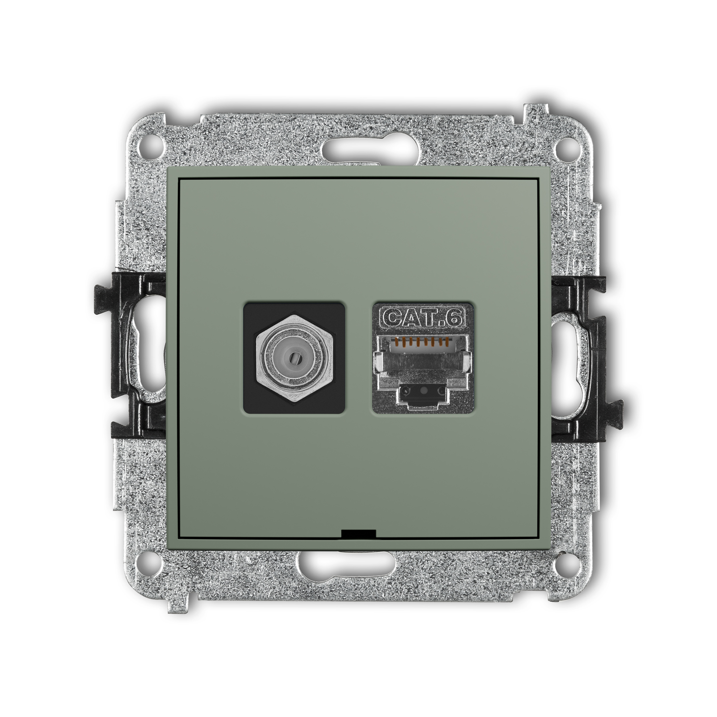 Single antenna F type socket (SAT) + single computer socket mechanism 1xRJ45, cat. 6, screened, 8-contact, without description field