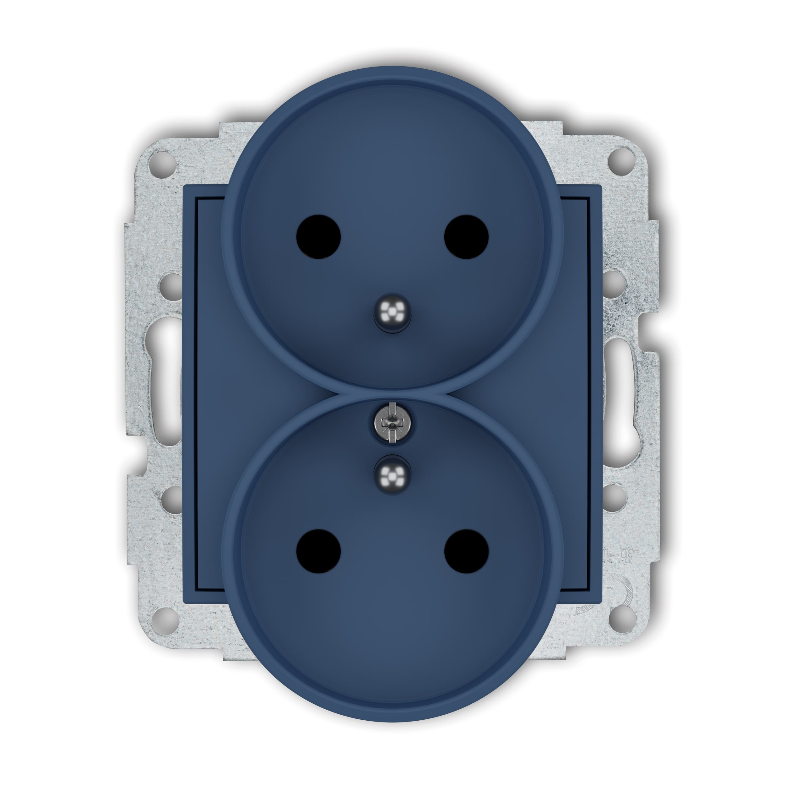 Double socket to a frame with the 2x(2P+Z) earth mechanism (with increased contact protection/shutter)