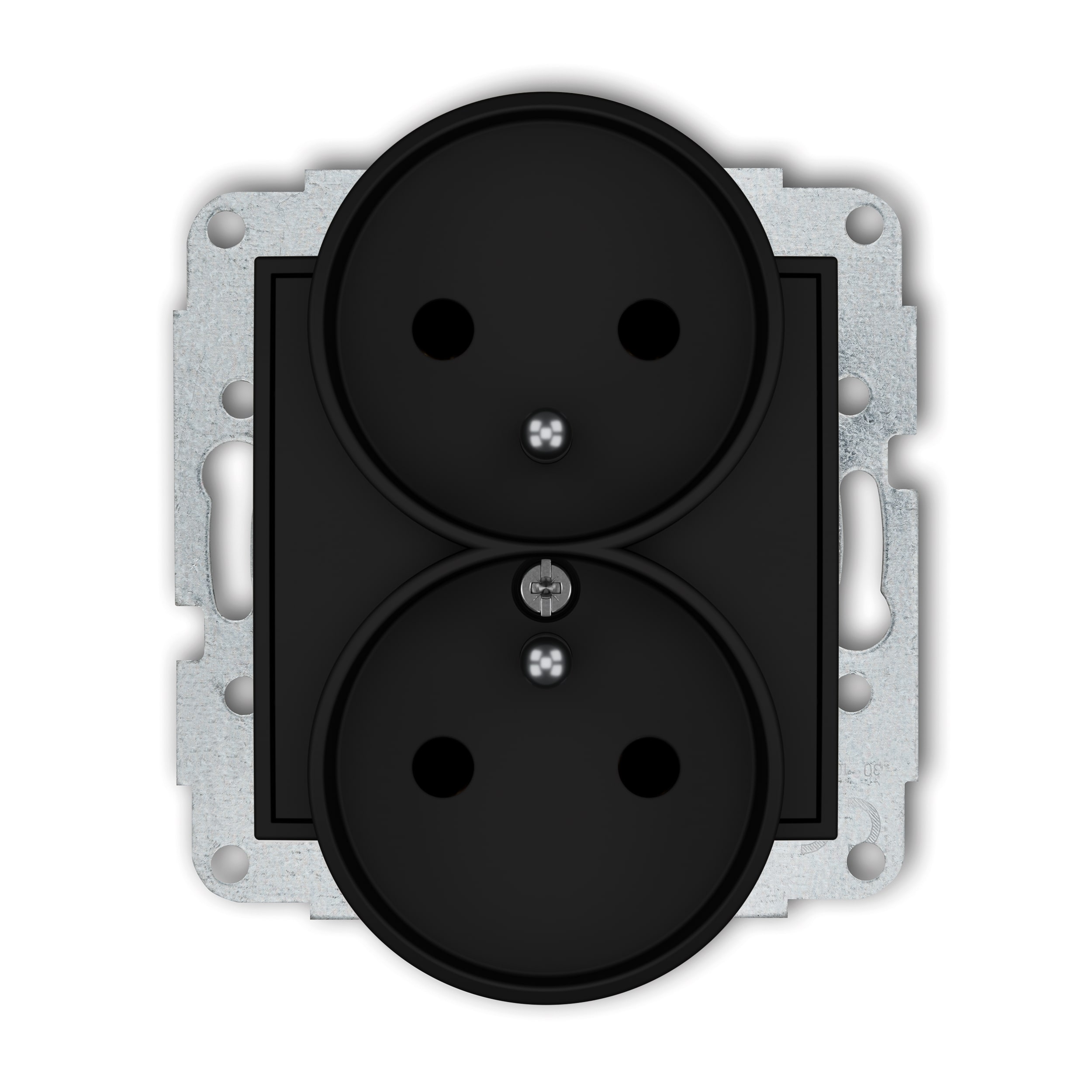 Double socket to a frame with the 2x(2P+Z) earth mechanism (with increased contact protection/shutter)