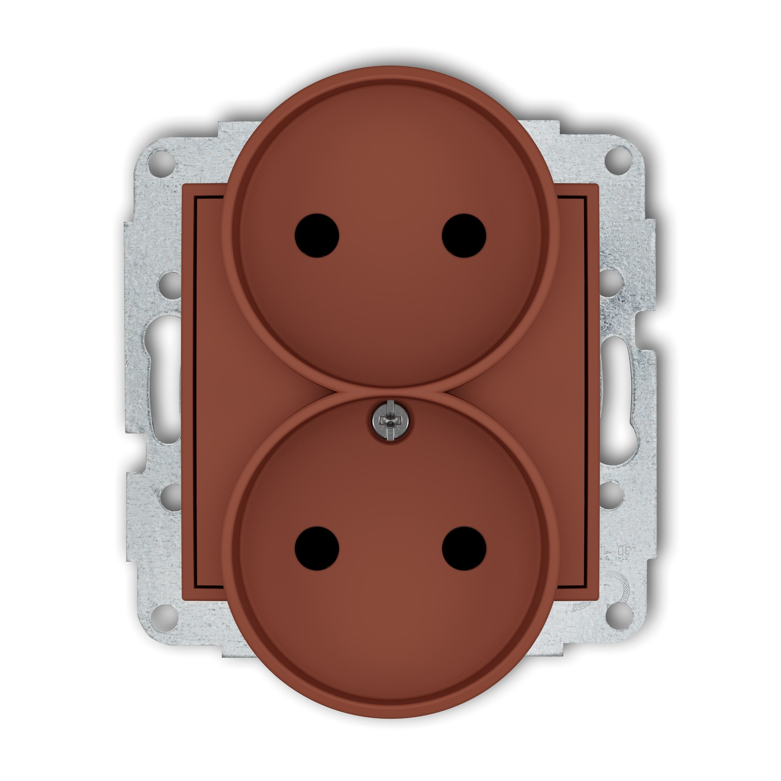 Double socket to a frame without the 2x2P earth mechanism (with increased contact protection/shutter)